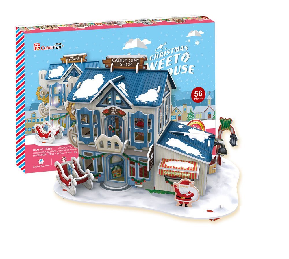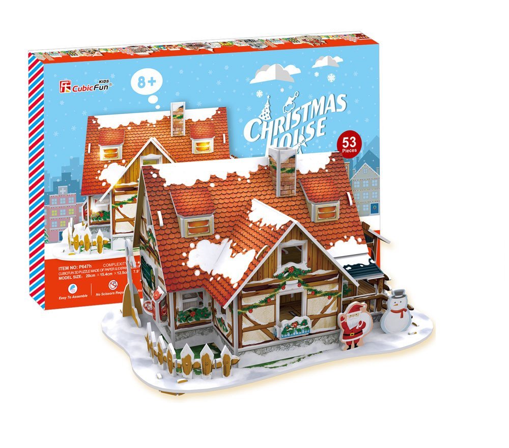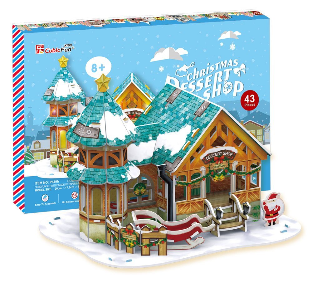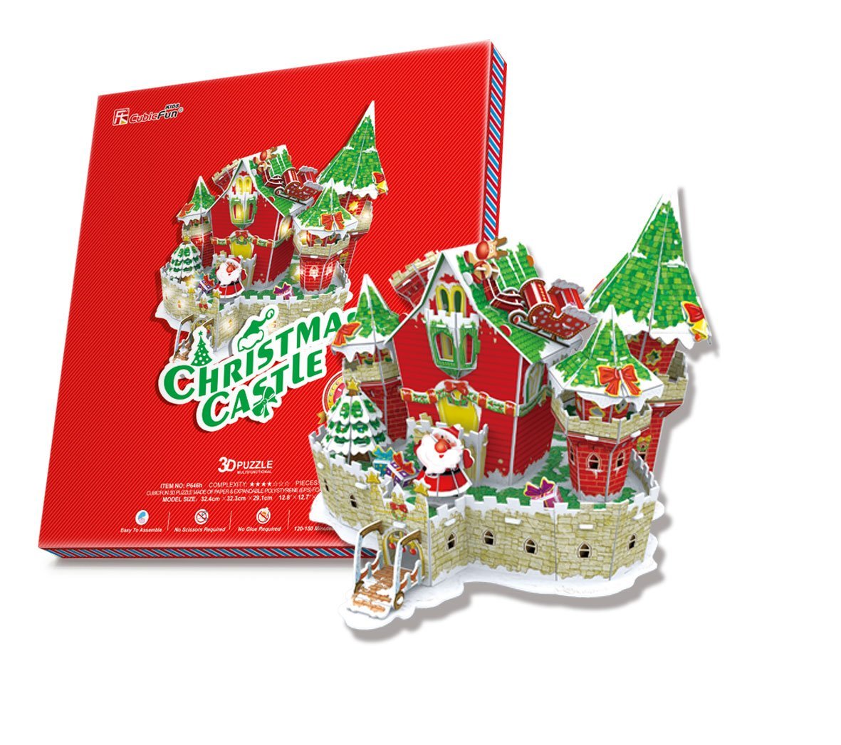 【今回のパズルの特徴】1.糊やはさみを必要とせず、難易度もやさしい。2.高さ22㎝と以外と本格的で飾ってもとても様になる。3.LEDライトでクリスマスらしい光の演出を楽しめる。(電池は別売なので注意して下さい。)