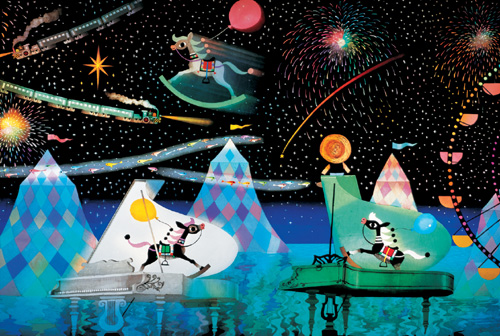 「藤城清治」氏という方の画を「1000ピース」のパズルにしたもののようですが、特徴的なのはその幻想的に綺麗な絵柄をより引き立たせる