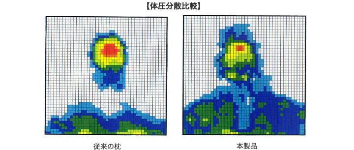 従来の極普通の枕では、上の画像の左側のように、「背中から頭までの首の部分が宙に浮いてしまう」という問題点については既に多くの方が実生活の中で感じている問題だと思いますが、この「骨格矯正枕Pro」はその負荷ポイントをできる限り自然に、安定的に支えてくれるように作られているのが特徴です。