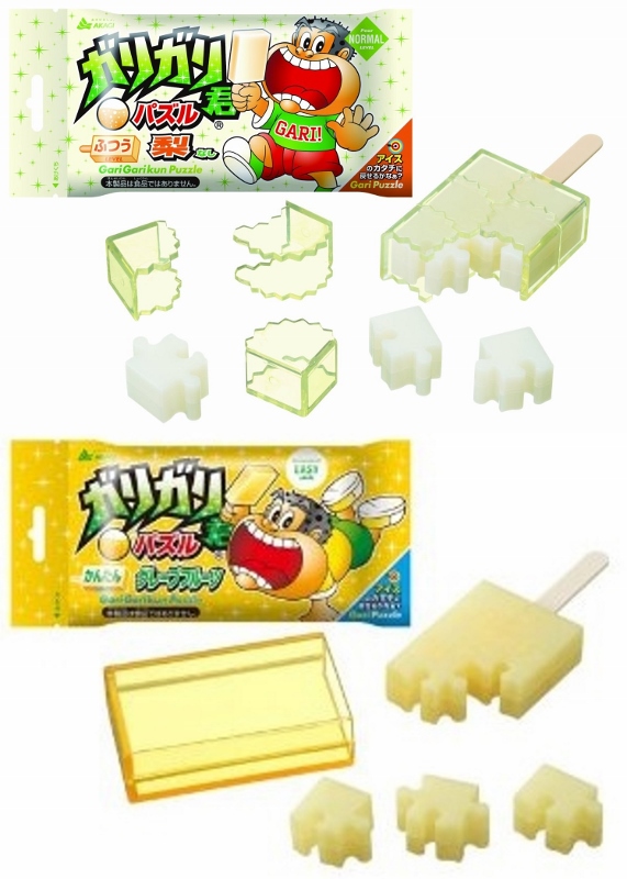 【ガリガリ君】を模したパズルゲーム。ピースを組み合わせてアイスバーを完成させてケースをかけるのですが、味によってはケースもパズルになっていて難易度がことなるので注意して下さい。(上の写真は現在該当サイトで取り扱われている