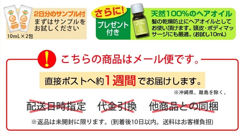 メール便」で送られてくる為、「配送日の指定」「代金引換」「他の商品の同梱」等が出来ないので、そこの部分は注意して下さい。